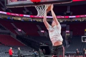 有望获更多时间!杨瀚森赛前热身 持球&空接暴扣 侧翼三分6中3